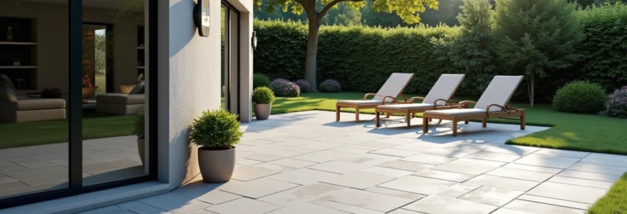La tendance est au mélange des textures et des formats pour créer des espaces extérieurs uniques et personnalisés. L’association de pavés traditionnels avec des dalles grand format permet de délimiter visuellement différentes zones fonctionnelles tout en apportant une touche de modernité. Par exemple, une terrasse peut combiner une zone centrale en dalles XXL entourée d’une bordure en pavés plus petits, créant ainsi un contraste visuel intéressant.
